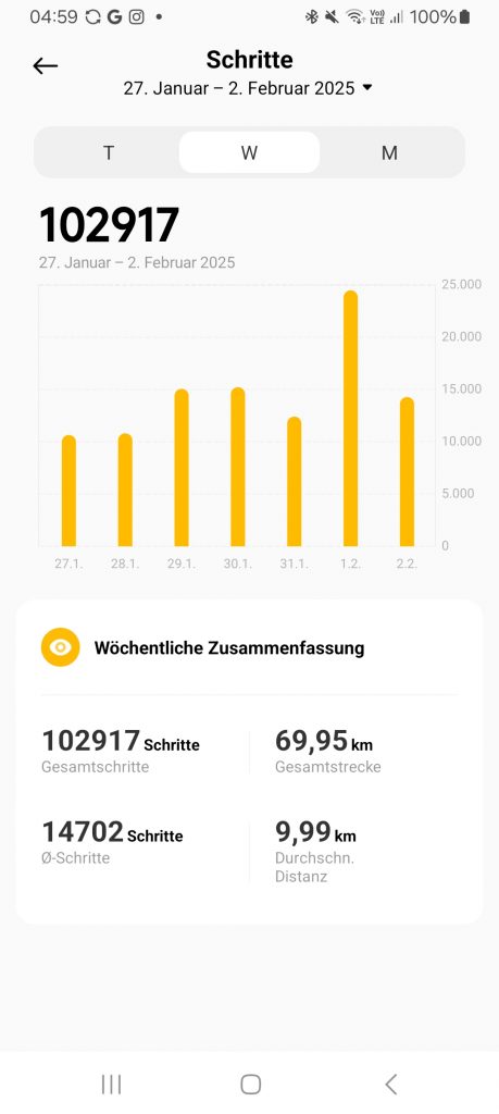 Ich füge hier mal meine stats der letzten Woche ein. Mensch, es fehlten nur 50 Meter….