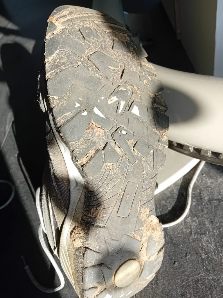 Die ist gut abgelaufen. Aber selbst nach dreimal 100 Kilometer (da habe ich ja auch die Schuhe gewechselt mit den Jogging-Schuhen, habe die aber nicht die ganze Strecke nutzen wollen) habe ich keine Blasen gehabt. Ich habe keine nassen Füsse gehabt. Ich bin mit den Schuhen wirklich sehr sehr zufrieden gewesen. Doch jetzt sind sie durch und sie mögen in Frieden ruhen.