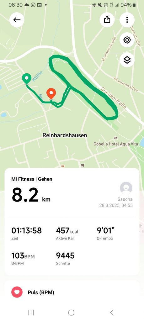 Aktuell um 06.55 zeigt er mir 662 verbrauchte kcal an. Das ist schon ein großer Unterschied zu sonst.