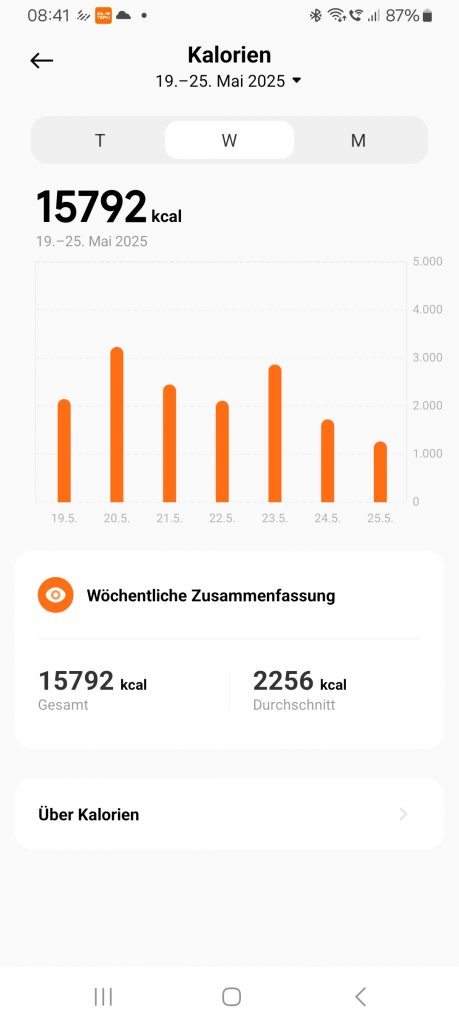 und habe mehr als 2200 kcal pro Tag verbrannt und im Schnitt 3 Stunden am Tag gesportelt. Pretty good.